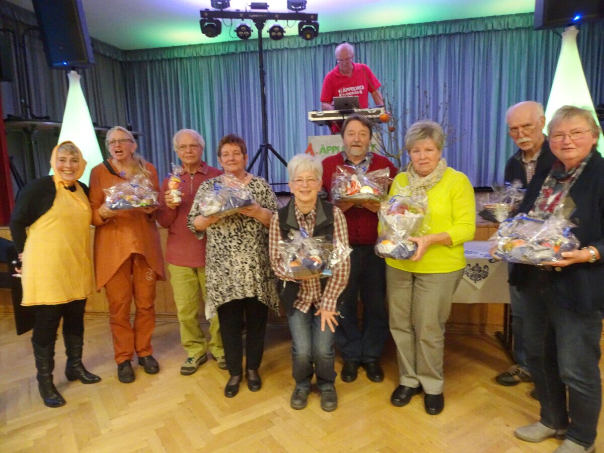 Wissenswertes und Lustiges erfuhren die Feiernden von Ina Kohrs, was es so alles rund um der Hessen liebstes Getränk, nämlich den Apfelwein, zu berichten gab. Großes Rätselraten gab es um die Anzahl der Apfelringe im Glas, die von den OWK’ler zu erraten war. Die Gewinner Jürgen und Annerose Kohlhaas, Sigrid und Richard Engel, Ute Rauch, Wolfgang Winne, Hildegard Neiß, Doris Heisel-Neumann sowie Rudolf Groh konnten sich hübsch verpackte Preise, u. a. gestiftet von der Metzgerei Herbert (Büttelborn) und Getränkehandel Grunau (Groß-Gerau), bei Kohrs abholen.