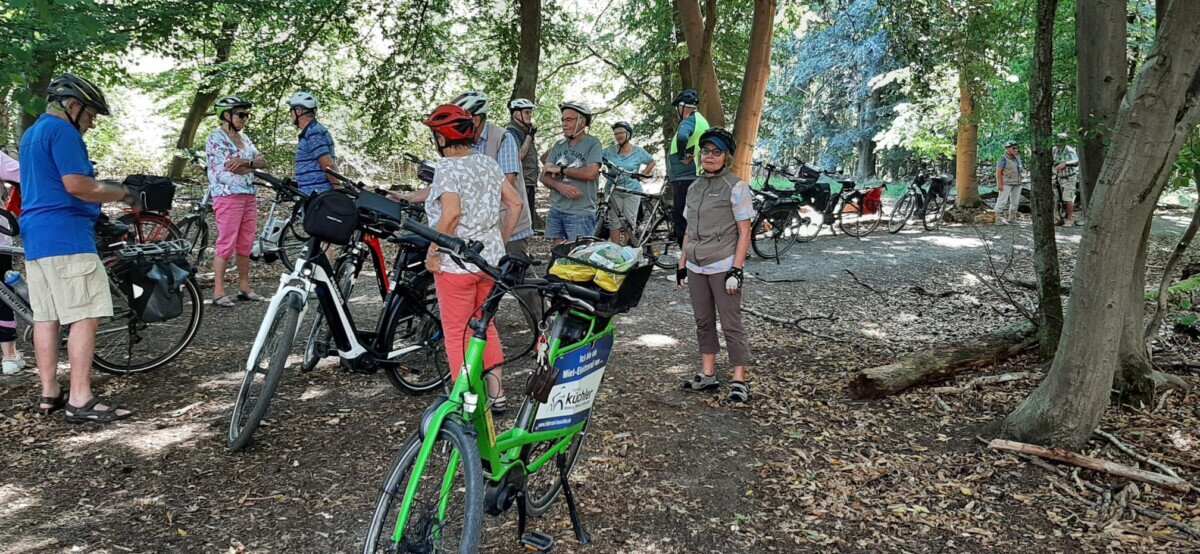 GROSS-GERAU – Vom gemeinsamen Treffpunkt aus, der Schutzhütte am Mönchbruchpfad, radelten 20 Teilnehmer zum Raunheimer Waldsee. Attraktion ist dort der Pinta Beach. Die Tour führte am Jagdschloss Mönchbruch vorbei und weiter auf schattigen Waldwegen.