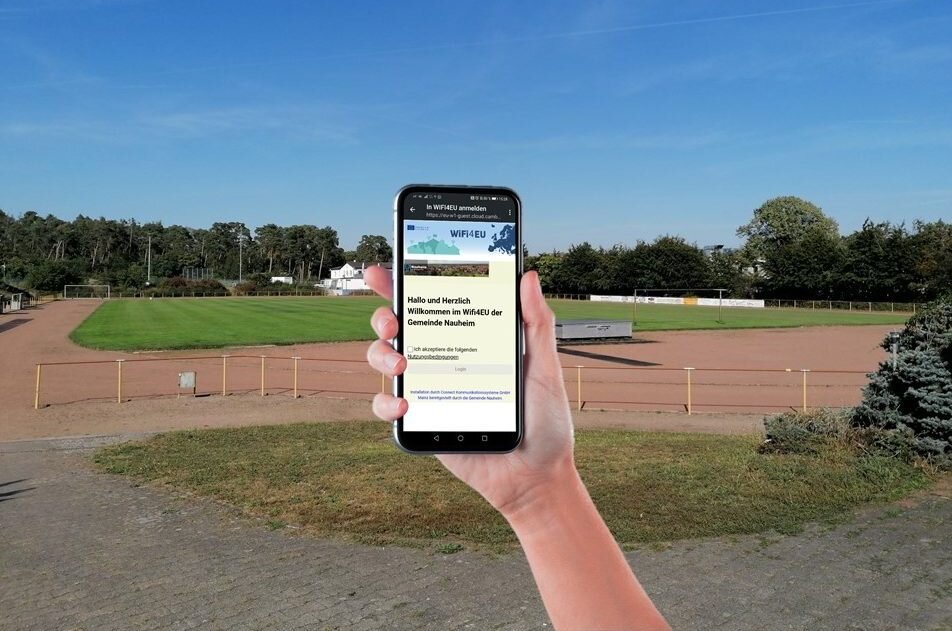 Auf der Tribüne, dem Hauptfeld und den Kunstrasenfeldern im Sportpark, in und rund um die Georg-Schad-Halle sowie im Uferbereich des Hegbachsees zwischen Hegbachseebahn und Grillhütte kann ab sofort im WLAN von „WiFi4EU“ gesurft werden. Ermöglicht hat den kostenfreien Internetzugang das gleichnamige Förderprogramm der Europäischen Union, für das sich die Gemeinde Nauheim 2018 beworben hatte.