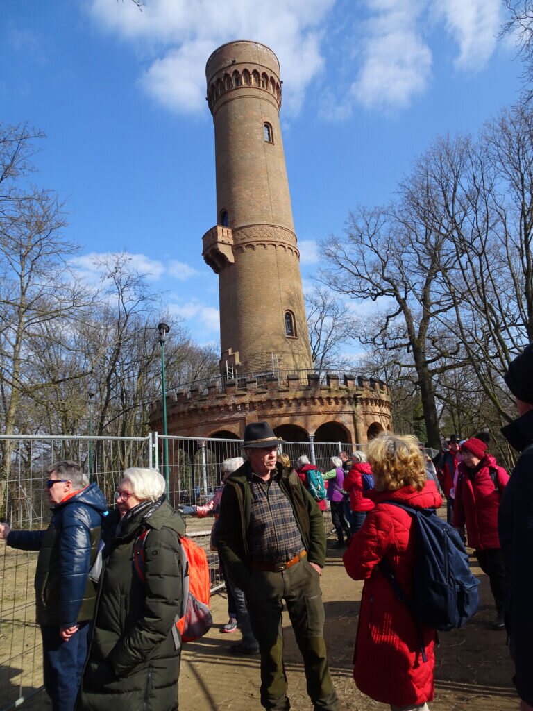 Über den Landschaftspark Lichtwiese wurde der Kletterwald „Weitblick“ angesteuert. Bei einer Pause waren alle begeistert von den unterschiedlichsten Parcours und den vielen Seilbahnen. Vom Böllenfalltor aus ging es zum „Internationalen Waldkunstpfad“. Mitten im Wald hatten im Laufe vieler Jahre internationale Künstler beeindruckende Kunstobjekte geschaffen. Am „schwebenden Holzhaus“ und den großen schwarzweißen „Vogelhäusern“ legten die OWK’ler eine Pause ein, bevor der Anstieg zur Ludwigshöhe bewältigt wurde. Am Ludwigsturm wurden sie auf dem „Balkon von Darmstadt“ mit einer großartigen Aussicht auf die Residenzstadt belohnt.
