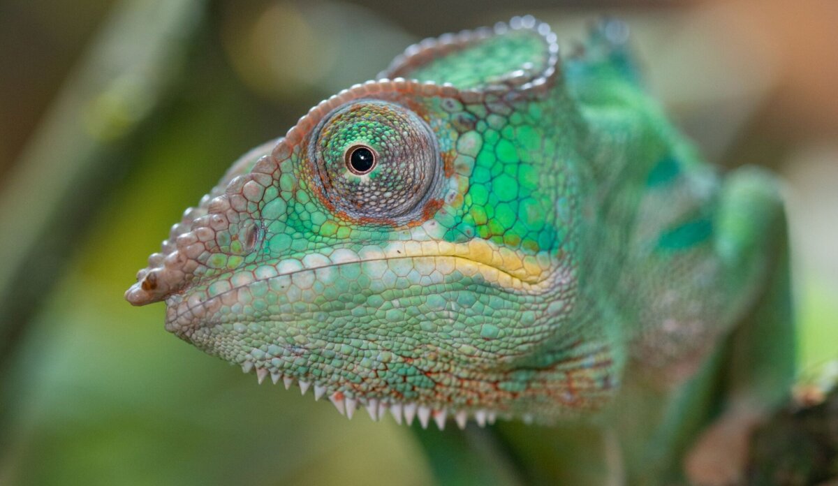 Seit Kurzem besitzt der Zoo Vivarium wieder ein Pantherchamäleon, das jetzt im Tropenhaus im großen Terrarium zu sehen ist und aus dem Zoo Zürich stammt. Damit setzt das Vivarium eine lange Tradition fort, denn der Zoo hält diese ungewöhnlichen Reptilien seit Jahrzehnten. Die Tiere können je nach Geschlecht, Temperatur und Stimmung ihre Körperfarbe ändern. Die Zehen sind zu Greifzangen verwachsen, so dass sie im Geäst ähnlich greifen können wie Menschen mit ihren Händen. Auch der Schwanz kann als Greiforgan genutzt werden. Die Augen bewegen sie unabhängig voneinander, was fast eine Rundumsicht ermöglicht. Am ungewöhnlichsten sind allerdings die Länge und der Gebrauch der Zunge. Diese ist bis zu eineinhalb Mal so lang wie der Körper und kann mit einer Geschwindigkeit von 20 Stundenkilometern im Bruchteil einer Sekunde herausgeschleudert werden, um Beute zu fangen. Pantherchamäleons kommen im Norden Madagaskars vor.