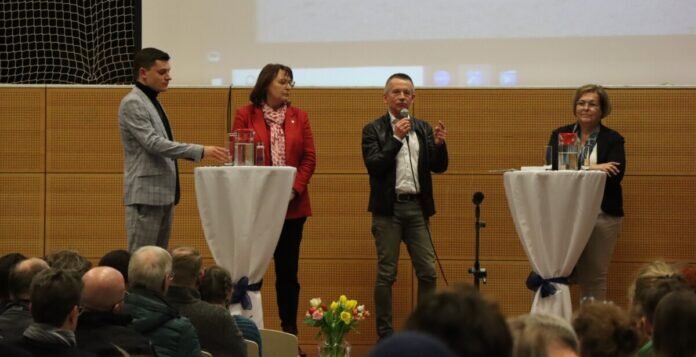 BSGG-Schulleiterin Sabine Kämpf und ihre Schulgemeinde wurden daraufhin aktiv und organisierten für Montag, 26. Februar, eine Podiumsdiskussion, um über den Stand der Dinge zu informieren und vor allem, um – angesichts der unbefriedigenden Unterrichtssituation an der BSGG mit mehreren Container-Standorten – auf die Dringlichkeit der Baumaßnahme hinzuweisen. Moderator Christian Döring führte in drei Gesprächsrunden auf der Bühne durch die Veranstaltung in der voll besetzten Schulaula.