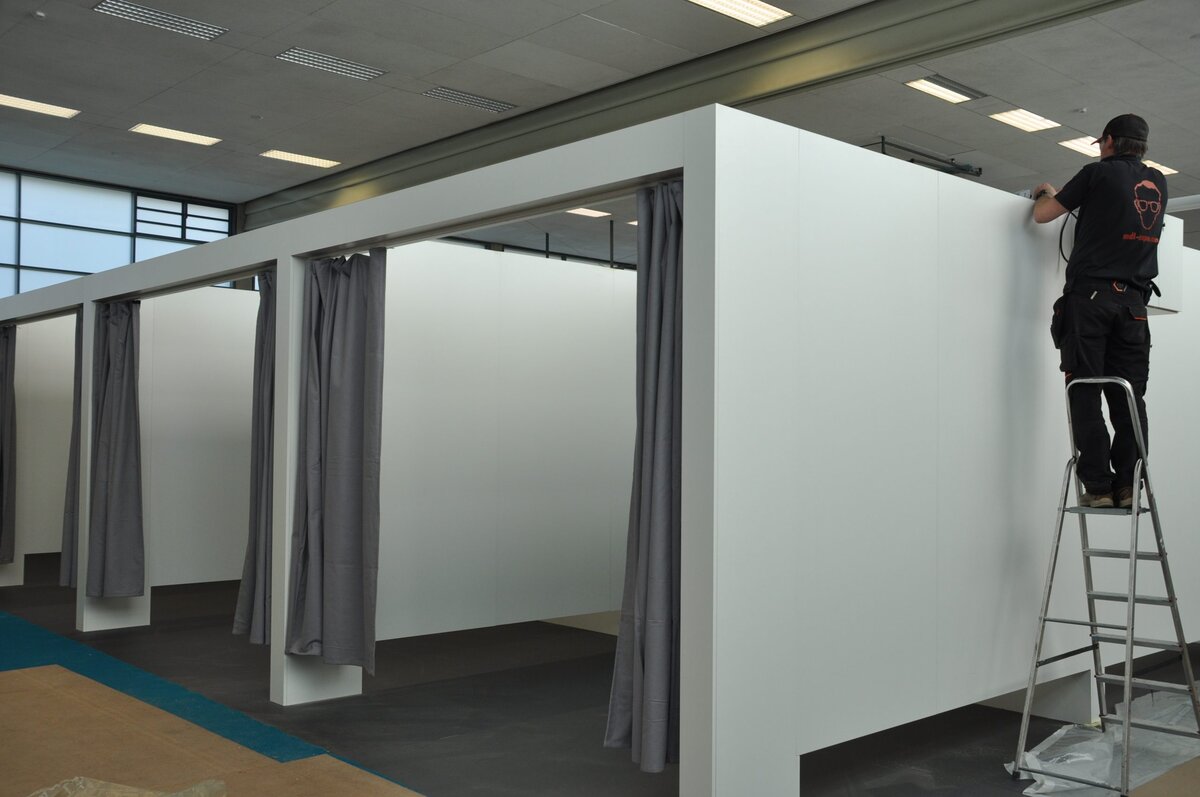 Kreis Groß-Gerau – Die Arbeiten am Corona-Impfzentrum des Kreises Groß-Gerau gehen voran. „Wir werden wie vorgegeben die Turnhallen an der Martin-Buber-Schule (MBS) bis Mitte Dezember fertigstellen“, sagt Kreisbrandinspektor Friedrich Schmidt, Leiter des Fachbereichs Gefahrenabwehr der Kreisverwaltung. Nach Abschluss dieser vorbereitenden Arbeiten, für die eine Messebaufirma aus dem Kreis beauftragt worden war, wird der Katastrophenschutz die Verantwortung fürs Impfzentrum an das Leitungsteam übergeben: an Andreas Franz (Leitung), Jochen Melchior (stellvertretende Leitung), Grazina Giarmana (ärztliche Leitung) und Dr. Ina Nold (stellvertretende ärztliche Leitung).
