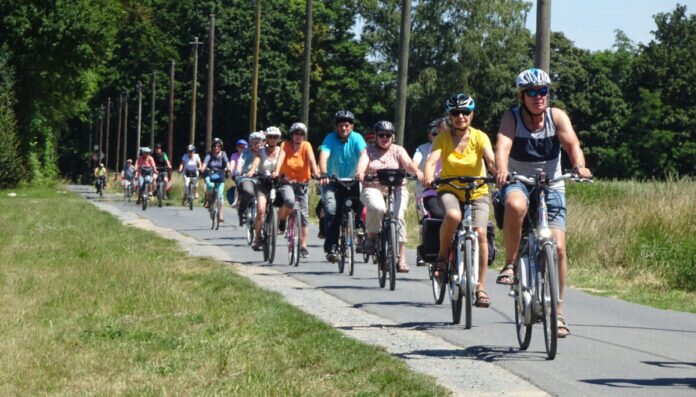 Groß-Gerau – Im unübersehbaren „Gänsemarsch“ schlängelten sich die Radler ab dem gemeinsamen Treffpunkt an der Mönchbruchhütte zur Monats-Rad-Tour des OWK Groß-Gerau.