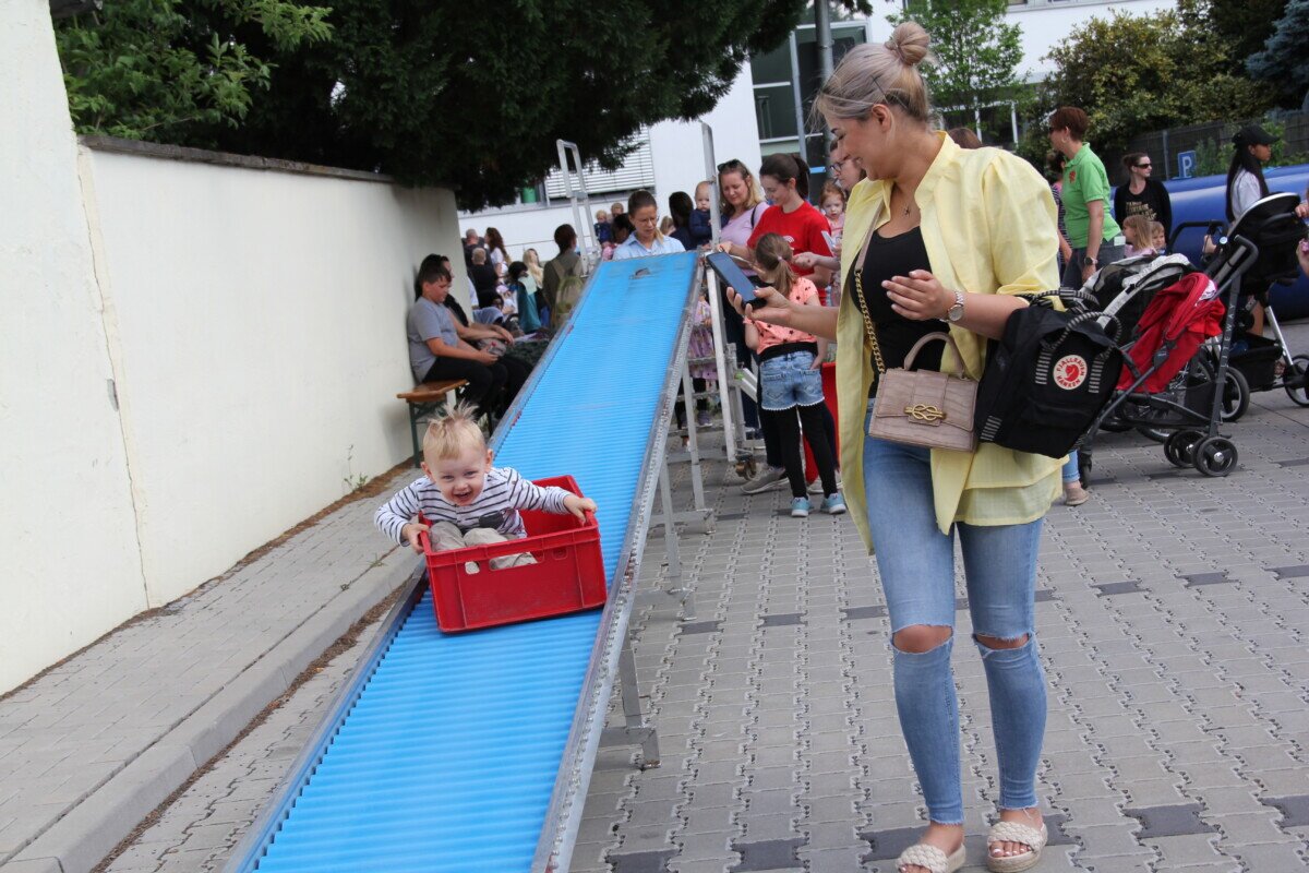 Viel Spaß mit der Kistenrutsche hatte Levin (zwei Jahre). Foto: Stadt Riedstadt