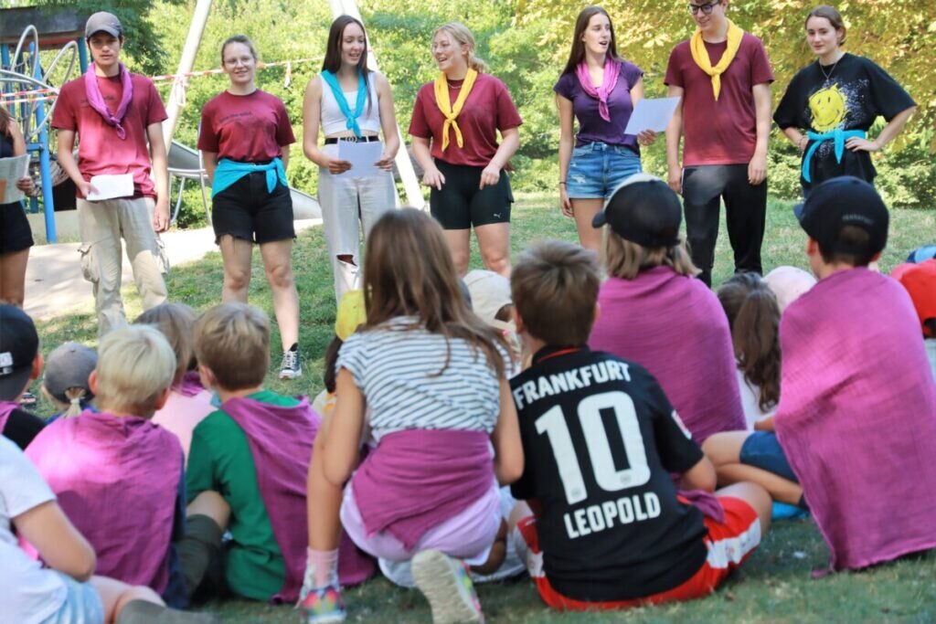 60 Kinder aus Crumstadt, Goddelau und Wolfskehlen erkunden unter dem Motto „Wilde Welten“ gemeinsam mit ihren 9 Betreuer*innen den Goddelauer Volkspark und das Jugendhaus WoGo United. Das tägliche Programm startet immer mit dem gemeinsamen Schmettern des diesjährigen Ferienspielliedes nach der bekannten Melodie von „Drei Chinesen mit dem Kontrabass“.