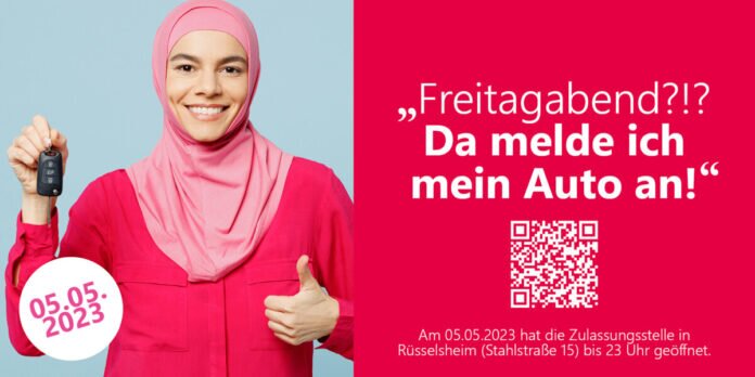 RÜSSELSHEIM – Eine besonders kundenfreundliche Aktion haben sich Mitarbeiter*innen der Kfz-Zulassungsstelle des Kreises Groß-Gerau einfallen lassen: Sie organisieren für Freitag, den 5. Mai 2023, die „Lange Nacht der Zulassung“. Heißt: Wer möchte, kann – nach vorheriger Anmeldung – sein Auto an diesem Tag ab 8 Uhr bis um 23 Uhr am Standort Rüsselsheim (Stahlstraße 15) zulassen; die Online-Terminvergabe dafür via www.kreisgg.de/kfz-zulassungsstelle ist ab 5. April freigeschaltet. Üblicherweise hat die Zulassung freitags nur bis 13 Uhr Terminzeiten.