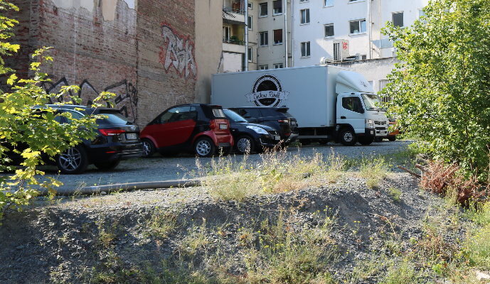 Der vorhandene öffentliche Gehweg stellt zwischen Marktplatz, Holzstraße und Goldener Krone eine wichtige barrierefreie fußläufige Erschließung dar. Durch die Neuordnung der öffentlichen Flächen, das Versetzen von drei Fahrleitungsmasten und der für den Straßenbahnbetrieb erforderlichen Schaltschränken, wird ein Entree in die Innenstadt geschaffen und für den Neubau ein geeigneter Außenraum mit Vorplatz umgesetzt.