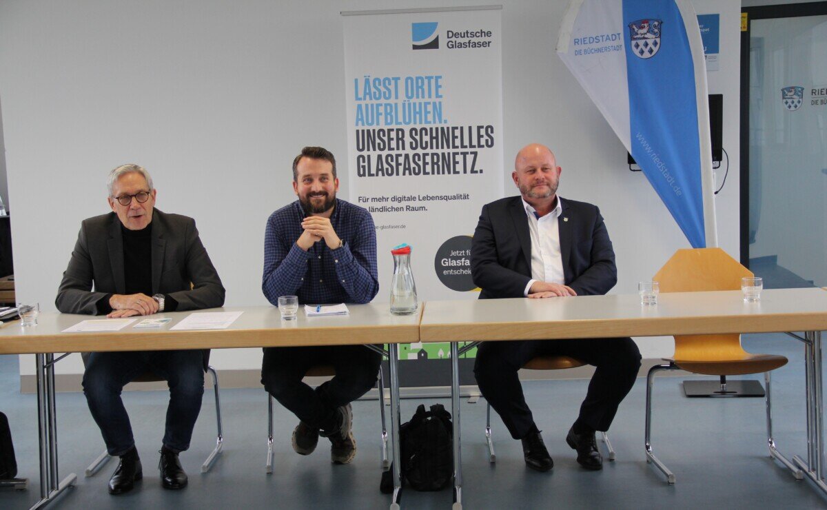 RIEDSTADT – Gute Neuigkeiten hatten Bürgermeister Marcus Kretschmann, Wirtschaftsförderer Michael Leimbach und Vertreter der Deutschen Glasfaser bei einem Pressegespräch im Riedstädter Rathaus: Bis Ende 2026 soll die Büchnerstadt Riedstadt flächendeckend in allen fünf Stadtteilen mit schnellem Internet ausgestattet sein.