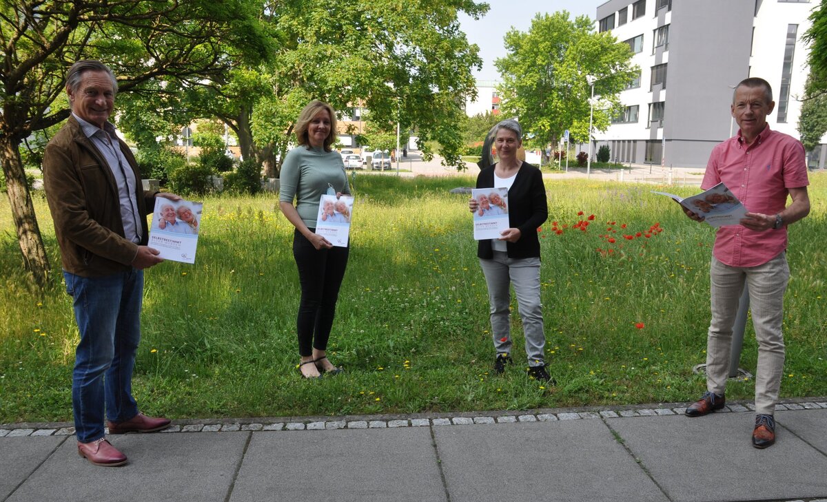 Die Arbeit hat sich gelohnt: Die neu aufgelegte Broschüre des Kreises „Selbstbestimmt älter werden“ in Händen halten (von links) Erster Kreisbeigeordneter Walter Astheimer, Polina Maierle vom Pflegestützpunkt, Corinna Koban von der Sozialplanung und Landrat Thomas Will. Foto: Kreisverwaltung