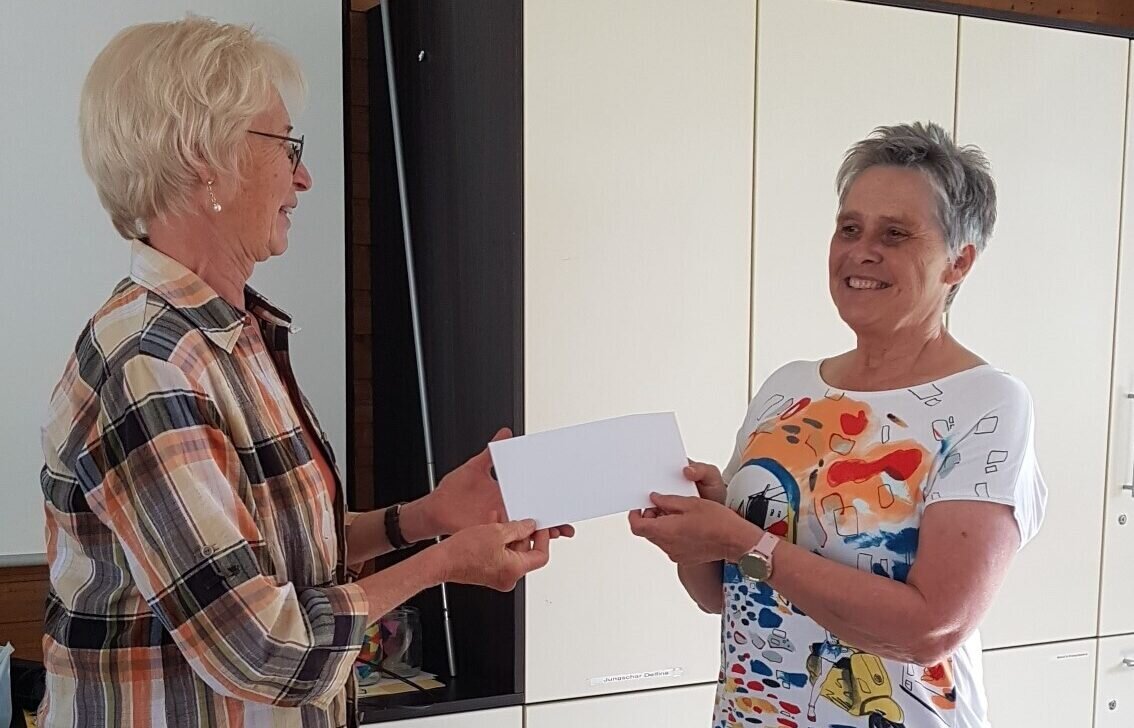 Als zweiter Punkt des Frühstücks stand eine Spendenübergabe an den Kirchenvorstand auf dem Programm. Helga Schöneberger überreichte Frau Fischer eine Geldspende und bedankte sich im Namen der Erfelder Landfrauen über die kostenlose Nutzung der Räumlichkeiten des ev. Gemeindesaals incl. Küche. Die Küche wird auch sehr gerne von den Landfrauen für die Vorträge der Ernährungsfachfrau genutzt, da in der Regel hierzu selbstgemachte Speisen als Kostproben den Teilnehmern, an diesen Veranstaltungen, angeboten werden. Im Gegenzug spricht Bärbel Fischer den Dank an die Erfelder Landfrauen für das jährliche Dekorieren des Altarbereiches anlässlich des Erntedankfestes  aus und bittet auch weiterhin um deren Mitwirkung.