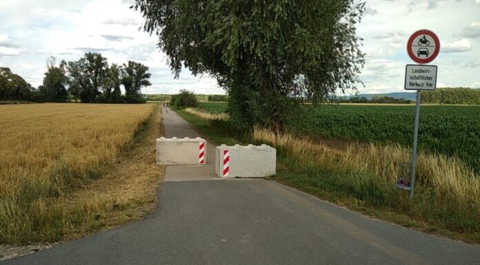 Riedstadt – Wie es sich in den beiden vergangenen Jahren bewährt hat, wurden auch in diesem Jahr für die warme Jahreszeit die Zufahrtswege zum Kies- und Waschwerk Schumann am Kiesloch zwischen Crumstadt und Eschollbrücken durch Absperrschranken, Betonpoller und Aufschüttungen gesperrt.
