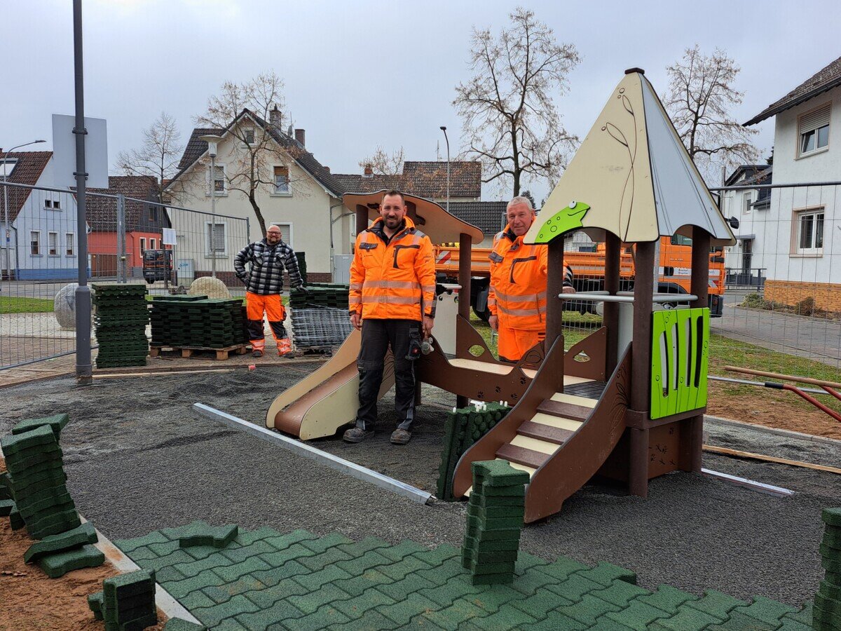 GRIESHEIM – Die Stadt Griesheim hat auf dem Spielplatz Zöllerplatz (Sandgasse / Ecke Georgstraße) eine neue Spielanlage aufgebaut. Diese eignet sich vor allem für kleinere Kinder. Die Spielkombination besteht aus zwei Türmen, die jeweils per Sprossenaufstieg erklommen werden können und durch einen Übergangssteg miteinander verbunden sind. Zusätzlich verfügt die Spielanlage über eine kleine Rutsche. Die städtischen Bauhof-Mitarbeiter Frank Landau, Daniel Landau und Heiko Egermaier-Vetter (v.r.n.l.) haben diese Woche den wichtigen Fallschutzbereich hergestellt, sodass die Spielkombination ab Donnerstag (16. Februar) freigegeben werden kann.