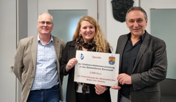 Im Rahmen der letzten Stadtverordnetenversammlung des Jahres wurde traditionell für eine gemeinnützige Einrichtung in Darmstadt gesammelt. In diesem Jahr darf sich das DemenzForumDarmstadt e. V. über eine Spende freuen. Am 7. Februar übergab Stadtverordnetenvorsteher Yücel Akdeniz mit dem Leiter des Büros der Stadtverordnetenversammlung, Hans-Jörg Daum, der Geschäftsführerin des DemenzForumDarmstadt e. V., Tatjana Kießling-Wirth, eine Spende in Höhe von 2000 Euro.