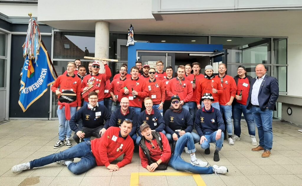 Vor der Verwaltungszentrale spendierte Bürgermeister Marcus Kretschmann Sekt für die Damen und Bier für die Kerweborsch. Bestens gelaunt schwärmten die Kerweborsch von einer „super Kerb“. Das 2-G-Konzept für die Veranstaltungen in der Christoph-Bär-Halle habe sehr gut funktioniert und der Umzug bei bestem Wetter sei sehr schön und ein voller Erfolg gewesen.