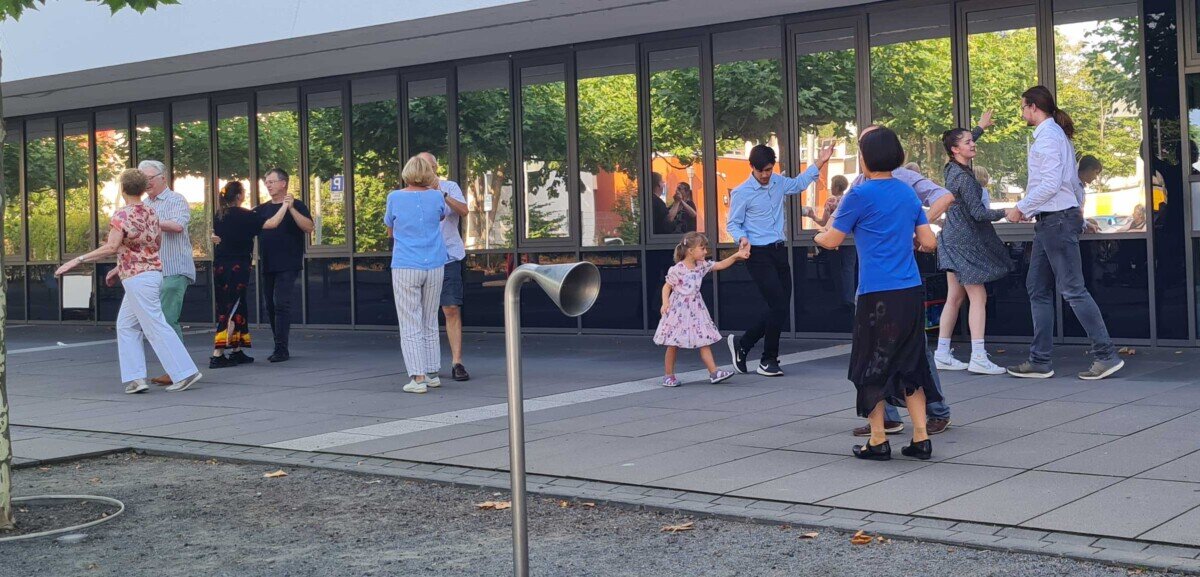 WEITERSTADT – Im Rahmen des vergangenen Wochenmarkts (30.07.) präsentierten sich sieben Paare der Tanzsportabteilung Blau-Gelb der SG Weiterstadt auf dem Weiterstädter Wochenmarkt.