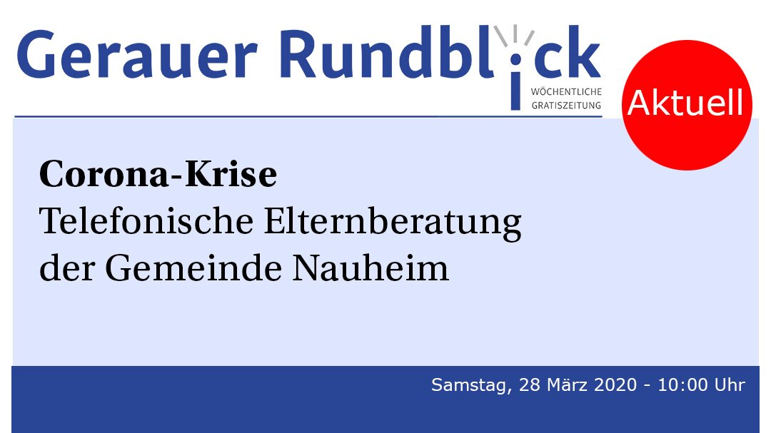 Nauheim – Nachdem der nächste Termin der Elternberatung zunächst abgesagt wurde, bietet die Gemeinde Nauheim am Mittwoch, 15. April, nun gemeinsam mit Kinderkrankenschwester Anette Zimmermann eine Telefonsprechstunde für Eltern an.