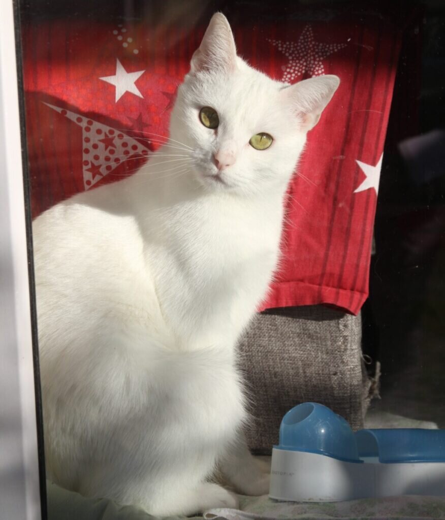 Snowwhite ist eine junge grazile Fundkatze, deren Alter unsere Tierärztin auf circa ein Jahr schätzt. Ab und an hält sie ihren Kopf etwas schief, was ihr einen putzigen fragenden Ausdruck verleiht. Die menschenbezogene Schmuserin wurde tierärztlich untersucht, kastriert und dürfte nun in ein liebevolles Zuhause ziehen, wo sie nach der Eingewöhnung auch wieder in den Freigang gelassen werden möchte.