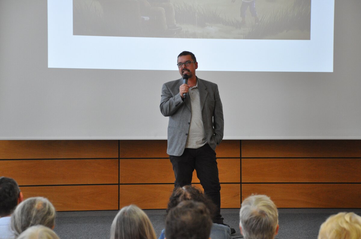 Kreis Groß-Gerau– Männliches Trauerverhalten biologisch erklärt bekamen die rund 50 Besucherinnen und Besucher des 6. Hospiz- und Palliativtags im Kreis Groß-Gerau. Als Referent war der Biologe und Autor Dr. Martin Kreuels im Georg-Büchner-Saal des Landratsamts zu Gast bei der vom Kreis und vom Hospiz- und Palliativnetzwerk Kreis Groß-Gerau organisierten Veranstaltung.