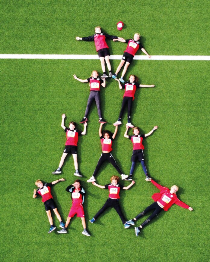Einen deutlich weiteren Weg zum Wettkampfort hatte die Mannschaft der U12 zurückzulegen: In Hünfeld (bei Fulda) fand das große Team-Hessenfinale statt. Die 15 stärksten hessischen Mannschaften, die sich aus 4 Regionalvorkämpfen ermittelt hatten, trafen aufeinander und suchten ihren Meister. Dieser Wettkampf stellte den Saisonhöhepunkt des Seeheimer Teams (Tim Braune, Maja Klöß, Robin Kruza, Fynn Lay, Samuel Mota, Rafael Nothnagel, Frida Ostrowicz, Johanna Schumacher, Stella Wamers, Arne Wenzel und Mia Zickler) dar, die von Felix Wamers und Sabine Lay bei den fünf Disziplinen betreut wurden. Der Wettkampf begann mit der spannenden 6x50m-Staffel, gefolgt von gleich zwei Wurfdisziplinen (Ring-Drehwurf und Schlagwurf mit „Mega-Heuler“). Der Additionsweitsprung im Anschluss wurde durch sehr konstante und weite Sprünge zur besten Disziplin der „roten Tiger“. Der abschließende Stadion-Cross über 1500m war dann das große Finale für alle Mannschaften und führte bergan und bergab sowie über zahlreiche Hindernisse. Hier entschieden sich dann schließlich auch die Podestplätze. Am Ende erreichte das Seeheimer Team einen guten 6. Platz und unterstrich als bestes Team aus der Region Süd die Leistungen aus dem Vorentscheid. Hessenmeister wurde das Gastgeber-Team aus Hünfeld, gefolgt von Eintracht Frankfurt und dem Wiesbadener LV. Das beste Mannschaftsfoto gelang dank Einsatz einer Drohne eindeutig dem TV Seeheim.