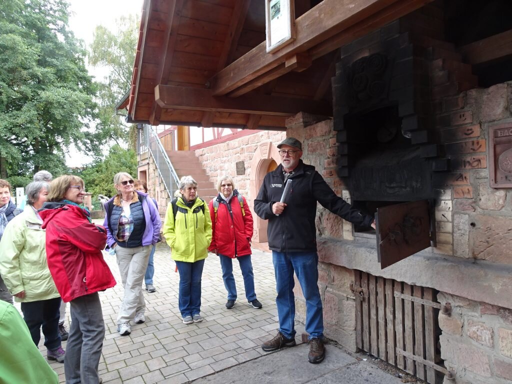 Am Ankunftstag wurde mit Ortsführer Theo Reichert Wald-Michelbach erkundet. Besondere Aufmerksamkeit neben der Ortsgeschichte erhielten der Bücherbrunnen, die hübschen Fachwerkhäuser, das typische Odenwälder Einhaus und das Backhaus mit integriertem Eberstall. Mit eigener Muskelkraft und Sonnenenergie unternahm die Wandergruppe einen Ausflug mit der Draisine auf dem Schienenweg Mörlenbach.