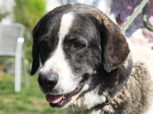 Vicky, weiblich und kastriert, ist eine sehr liebe Landseer-Hütehund-Mix Hündin. Sie zeigt ein sehr sanftes Wesen und ist verträglich mit Hunden und Katzen.