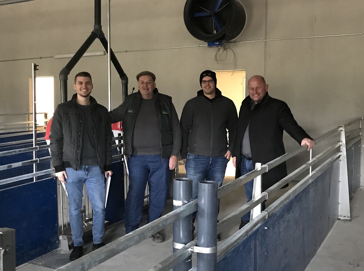 Der noch leerstehende Stall für Mastschweine ist als Wohlfühlstall konzipiert, inklusive einer Fußbodenkühlung im Sommer und –heizung im Winter. Außerdem gibt es direkte Futter- und Wasserleitungen zu den einzelnen Boxen.